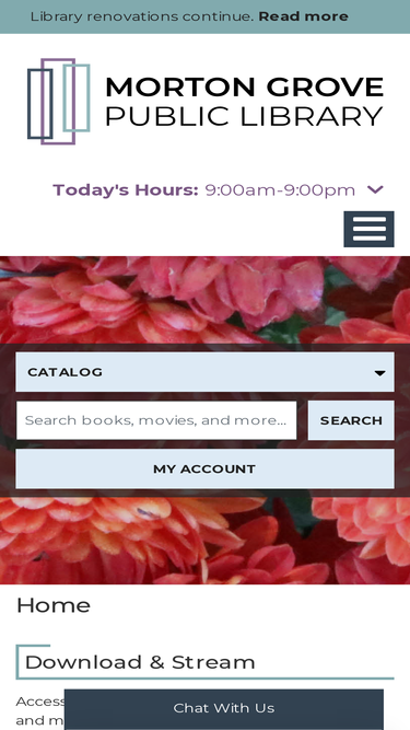 100%The Morton Grove Public Library will provide a place offering materials, programs, and services to assist the community in its pursuit of personal growth and lifelong learning.