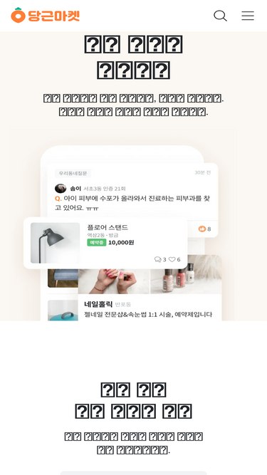 96%중고 거래부터 동네 정보까지, 이웃과 함께해요. 가깝고 따뜻한 당신의 근처를 만들어요.