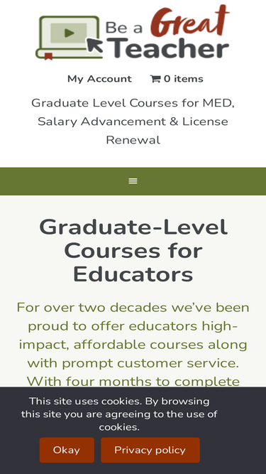 79%Please note that some school networks may interfere with you viewing your purchased online course. If you have any trouble viewing your order please enable Cookies on your browser or view your order off of your school network. If you continue to experience issues please email us at info@beagreatteacher.com or call 1-602-499-7967. Thank You.