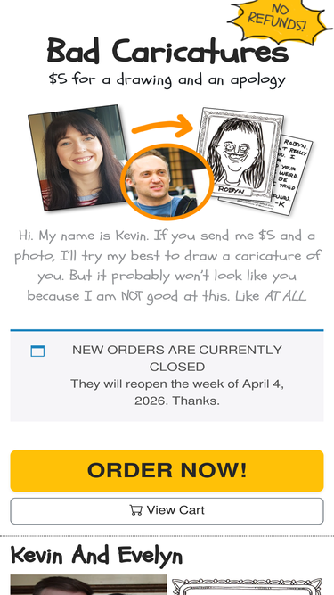 100%Your personalized caricature of two people. Drawing on the front. A written apology on the back. Get your original Bad Caricature today