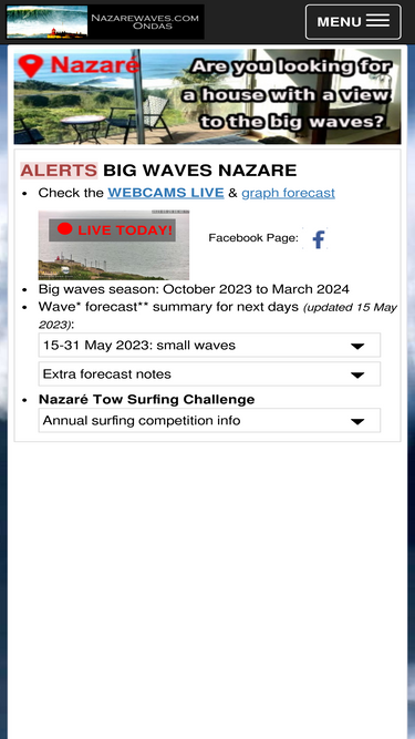 59%Veja em direto o mar da Nazaré através das câmaras (webcams) e consulte a previsão de ondulação - Ondas gigantes da Nazaré Portugal, noticias, fotos, vídeos e reportagens sobre sessões de surf, bodyboard e outros desportos, nas maiores ondas do mundo. Webcam Nazare e previsão, Portugal, Europa