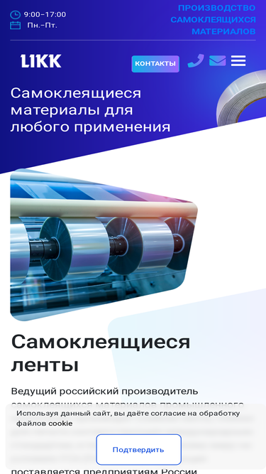 85%российский производитель самоклеящихся лент, материалов на различной основе.