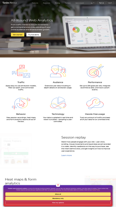 90%Яндекс.Метрика поможет получить наглядные отчёты и видеозаписи действий отдельных посетителей, узнать, что ищут люди на вашем сайте, собирать статистику по каждому объявлению в Директе и следить за конверсией даже в офлайне.