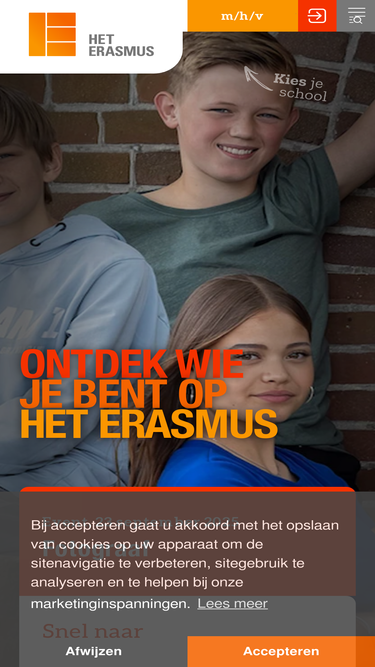 97%Het Erasmus mavo/havo/vwo is de openbare VO-school van Almelo en omstreken! Met de leerwegen gymnasium, vwo, havo en mavo bieden we ieder wat wils. Door het brede extra aanbod krijgen leerlingen de mogelijkheid hun talenten te ontdekken en te ontwikkelen.