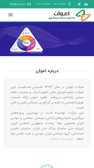 100%شرکت اعوان فعال در تولید نرم افزارهای بزرگ سازمانی مانند: خط تولید نرم افزار، مدیریت ارتباط با شهروندان، پورتال سازمانی، مدیریت فرآیند و... می باشد
