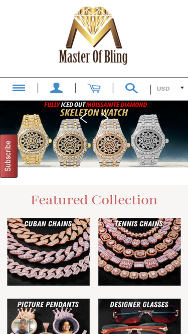 100%Shop Premium Men's Moissanite Diamond Jewelry at Master of Bling. Custom designs, Moissanite diamonds, Iced out Watches, Cubans, Tennis chains and more.Luxury style, unbeatable prices. Affordable luxury, made to last. Custom Jewelry specialist.