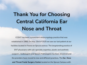 99%The Central California Ear Nose & Throat Medical Group provides the latest practice and ENT news. Minimally Invasive Surgery Balloon Sinuplasty, Xoran MiniCat in office CT Scan, MyLab Ultrasound, CCENT celebrating 50 years of excellence and member of the chamber of Commerce Fresno CA.