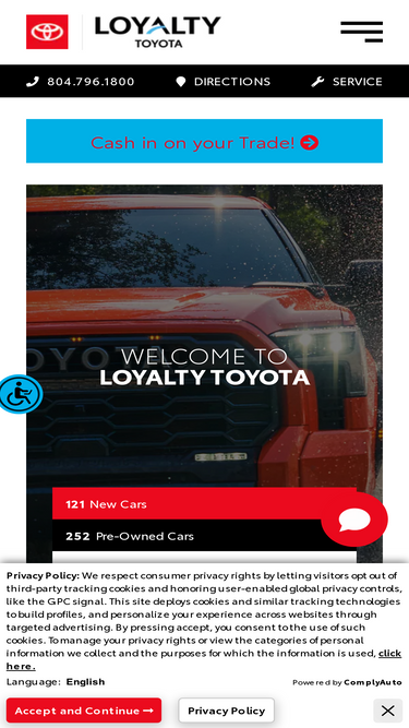 89%Loyalty Toyota Richmond of Chester VA proudly serving Richmond, Colonial Heights, Petersburg, is one of the finest Chester Toyota dealers. Visit us today!