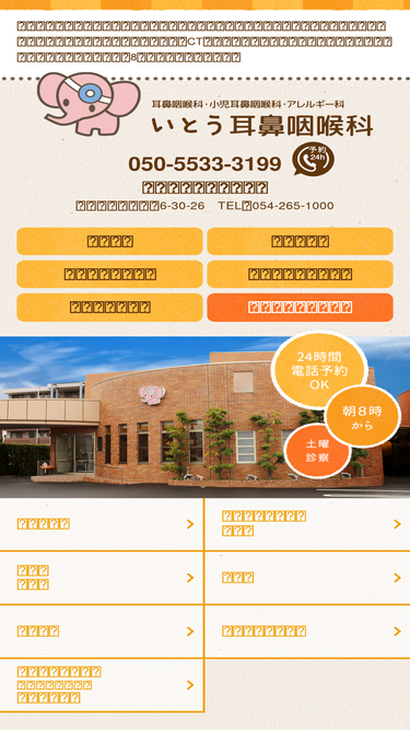 97%いとう耳鼻咽喉科は静岡市葵区千代田にある耳鼻咽喉科・小児耳鼻咽喉科です。「耳・鼻・のど」をはじめとした各種疾患を、CTなど最新の医療機器により診断・治療できる体制を整えております。朝8時から。土曜日も診察。