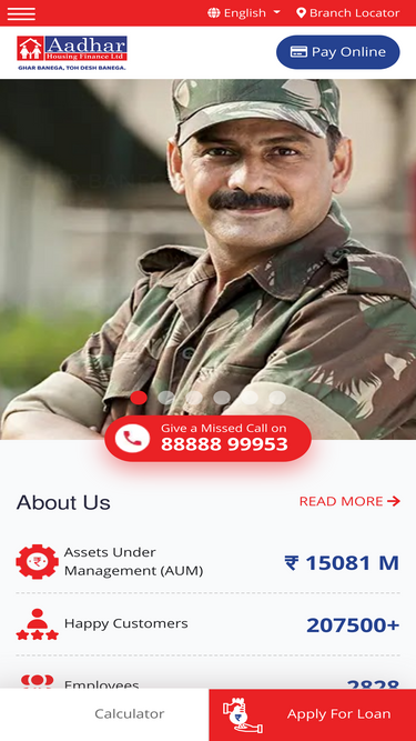 75%Aadhar Housing Finance Ltd (AHFL) is one of the largest affordable housing finance company in India servicing the home financing needs for purchase/ construction of residential and commercial property, loans for self-employed persons and salaried employees at attractive rate of interest.Our financing process is simple, hassle-free, transparent and speedy. Apply today!