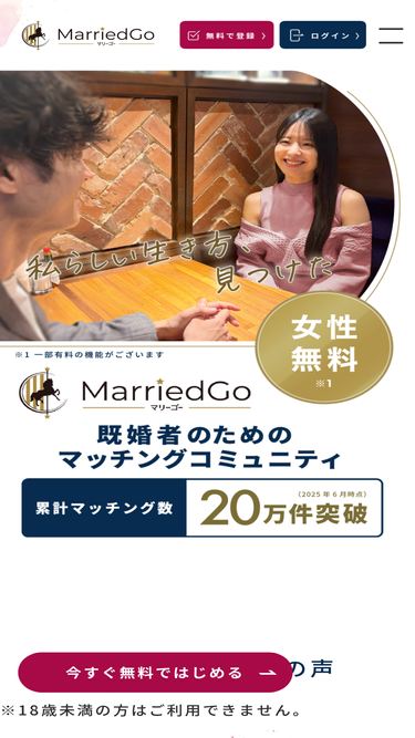96%『マリーゴー』は既婚者同士の友達やパートナーを作り、人生をより充実させることを目的としたマッチングサービスです。セカンドパートナーやオープンマリッジなど、多様な関係性を築く夫婦が増えています。