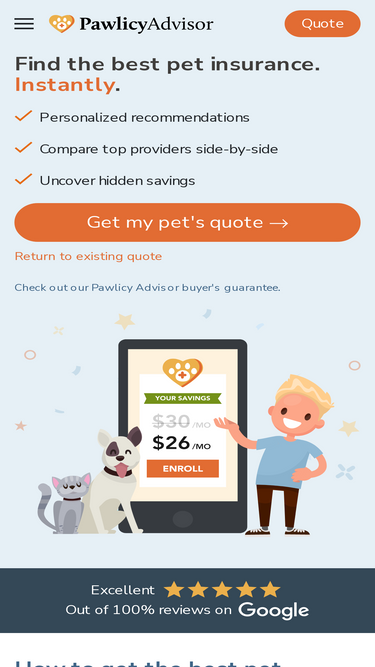 67%Compare quotes from top dog insurance companies and enroll in minutes. Get FREE, expert advice to help you choose the best plan for your dog today!