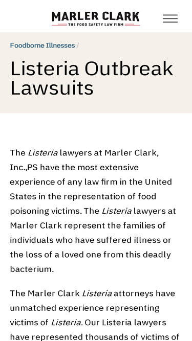 87%Marler Clark, The Food Safety Law Firm, is the nation’s leading group of food poisoning lawyers representing victims of foodborne illness outbreaks.
