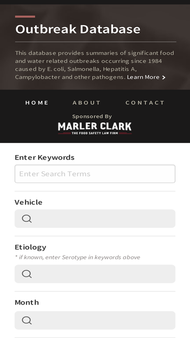 75%Marler Clark sponsors the Foodborne Illness Outbreak Database, a resource that provides access to food poisoning outbreak data in one easy to search…