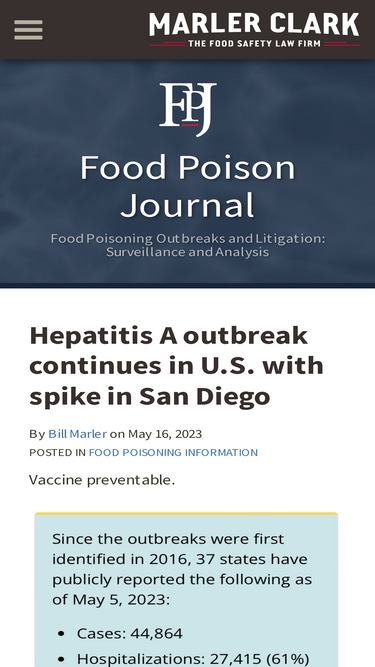 hepatitis blog is published by marler clark law firm & covers prevention, outbreaks & victim stories about preventable foodborne hav.