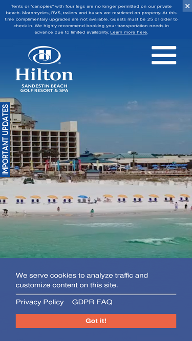68%escape to emerald waters and sugar white sands at hilton sandestin beach golf resort & spa. a full-service resort located in destin, fl.