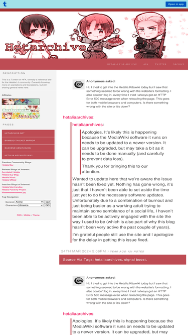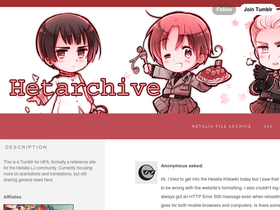 87%This is a Tumblr for HFA, formally a reference site for the Hetalia LJ community. Currently focusing...