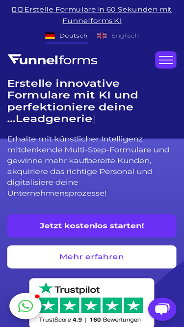 95%Starte komplett kostenfrei! Entscheide dich danach für einen jährlichen oder monatlichen Plan oder nutze Funnelforms Free.