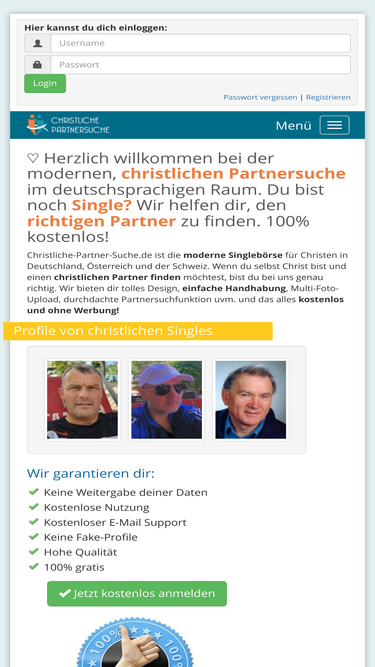 100%100% gratis ✔ viele christen online ✔ viele erfolgsmeldungen ✔ partnersuche & partnervermittlung für christen. jetzt anmelden.