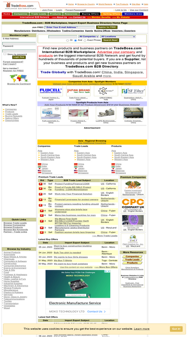 global b2b marketplace, portal. international business to business marketplace. send targeted trade leads, post trade offers, find new business partners. thousands of companies, trade offers. product showrooms, suppliers, business news, business keywords, more. get a free business website at global b2b directory.