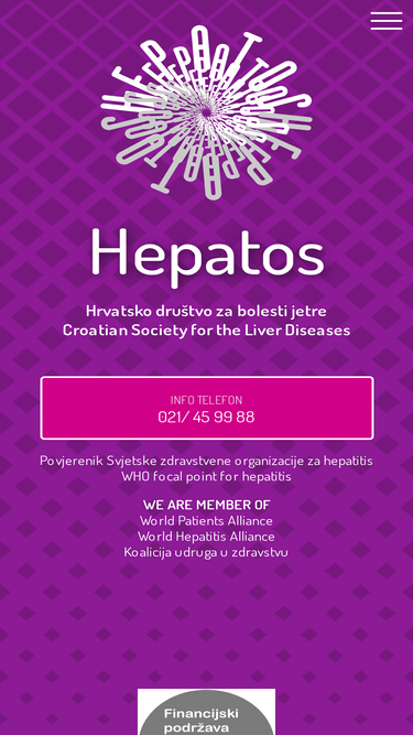 81%Hrvatsko društvo za bolesti jetre "Hepatos" je pravni sljednik Hrvatske udruge liječenih i oboljelih od hepatitisa “Hepatos”. Hepatos je nevladina i nestranačka organizacija osnovana u Splitu 2000. godine s osnovnim ciljem pružanja pomoći oboljelima od hepatitisa. Hepatos je prva NGO u Republici Hrvatskoj koja za ciljnu skupinu ima oboljele od hepatitisa.