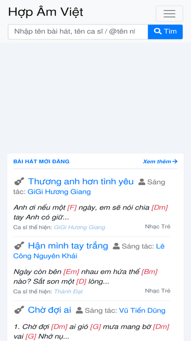 Website tra cứu hợp âm chuẩn dành cho người chơi guitar, cung cấp các công cụ hữu ích khi tra cứu hợp âm, kho dữ liệu với hơn 20,000 bài hát phổ biến ở Việt Nam.