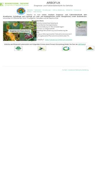 arbofux ist eine online nutzbare diagnose- und faktendatenbank über krankheiten, schädlinge und lästlinge an laub- und nadelgehölzen sowie bodendecker, einsetzbar im öffentlichen grün, privatgarten, galabau und der baumschule.