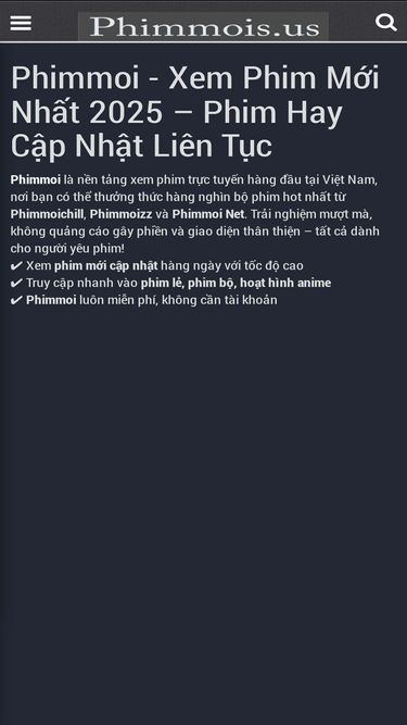 100%Phimmoi là nền tảng xem phim trực tuyến hàng đầu tại Việt Nam, nơi bạn có thể thưởng thức hàng nghìn bộ phim hot nhất từ Phimmoichill, Phimmoizz và Phimmoi Net. không quảng cáo gây phiền