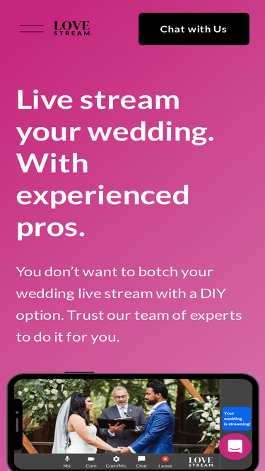 86%Don't let your VIPs miss your wedding for any reason. With LoveStream, it's simple to include them in your big day.