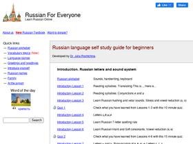 78%russian language interactive online self study guide. russian introductory phonetic course, grammar course for beginners, vocabulary building lessons, interactive exercises, audio files, language games, oline quizzes and tests with immediate feedback.