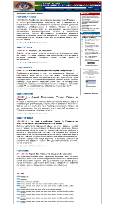 63%сайт содержит обозрение событий, происходящих в нижнем новгороде, области и стране, и политический анализ их причин и последствий. здесь также можно найти портреты федеральных и региональных политиков и эксклюзивные материалы, заслуживающие внимания.