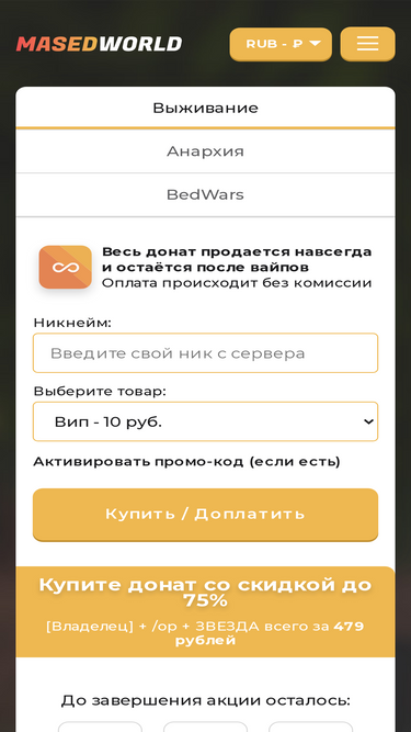 покупка игровой привилегии и ключей на сервере майнкрафт (minecraft) masedworld, версия сервера с 1.8 по 1.20, айпи (ip): mc.masedworld.net