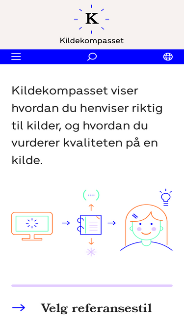 45%kildekompasset viser hvordan du henviser riktig til kilder, og hvordan du vurderer kvaliteten på en kilde.