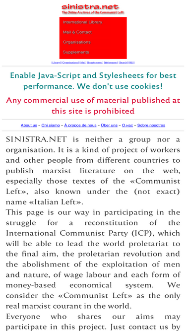 welcome to sinistra.net, the host of the international library of the communist left. this site contains texts in english, french, german, spanish, russian and of course italian...