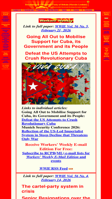 88%home page of the revolutionary communist party of britian (marxist-leninist) featuring workers' weekly internet edition that presents contemporary marxist-leninist thought on britain and the world and contains archives of the line of march monthly publication of rcpbml, workers' daily news release on the workers movement and other documents of the party