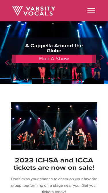 35%Varsity Vocals is the home of a cappella since 1995. We give singers in high school and college (and beyond!) the opportunity to interact, compete, learn from each other, get feedback from the pros, and perform in fantastic venues around the globe.