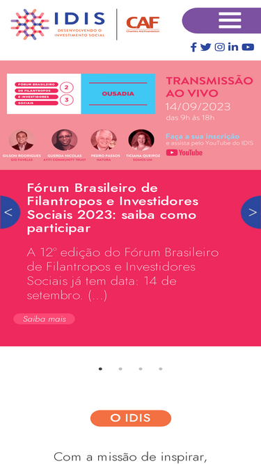 57%Com vasta experiência em avaliação de impacto, o IDIS é capacitado na metodologia SROI e calcula o retorno social do investimento. Saiba mais!