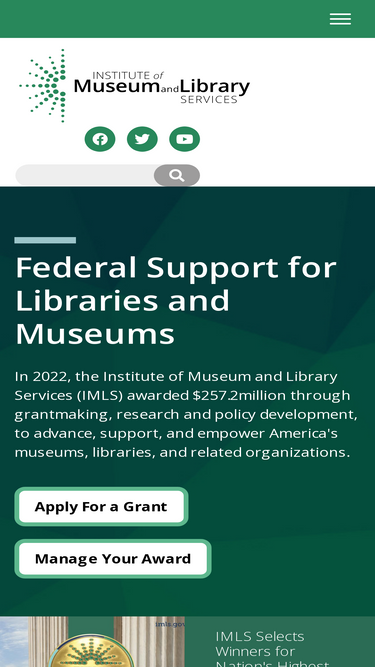 70%IMLS is an independent federal agency that provides library grants, museum grants, policy development, and research.