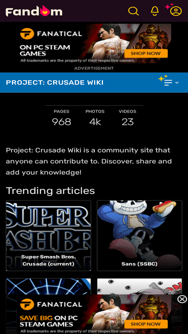 welcome to the project: crusade wiki! project: crusade wiki was founded on october 2011, and currently has 130 articles and 1,030 pages. here you can find lots of information about project: crusade, including information on characters and stages. languages: español | 中文 | official crusade forum...