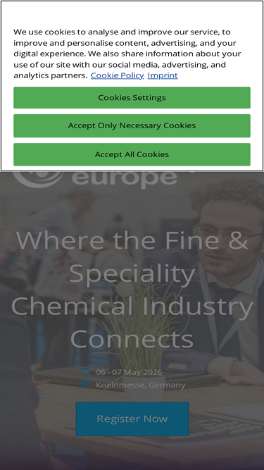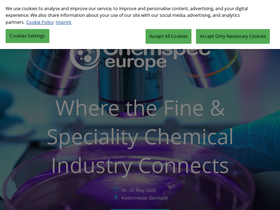60%Chemspec Europe is a key event for the fine and speciality chemicals industry. With a highly specialised profile, the exhibition is the place to be for purchasers and agents to meet with manufacturers, suppliers and distributors of fine and speciality chemicals to source specific solutions and bespoke products.