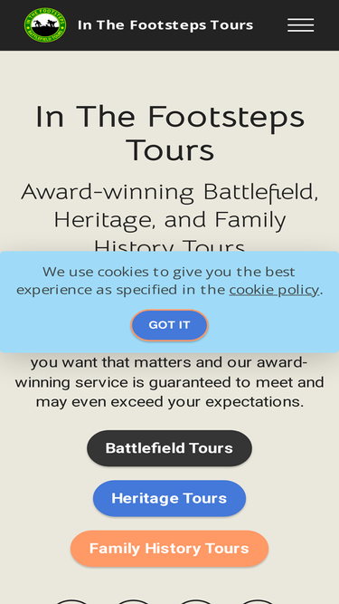 with so many companies offering battlefield, historic and heritage tours it's difficult to pick the one that's best for you. with in the footsteps it is what you want that matters and our award winning service is guaranteed to meet and even exceed your expectations. in the footsteps for all your battlefield tour, historic and heritage tour requirements.