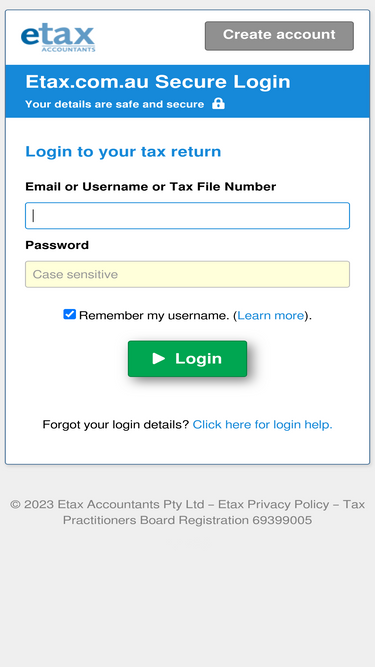 81%etax login: welcome back to etax.com.au! login now to complete your tax return, check your tax refund estimate, check your messages, save a receipt or ask etax support a question.