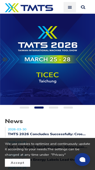 31%taiwan international machine tool show (tmts2024) will be held on march 27-31, 2024 at tainex by taiwan machine tool & accessory builders’ association (tmba). tmts2024 will showcase with more than 4,500 booths and 750 exhibitors, and the display area will be over 80,000 square meters. tmts is taiwan’s biggest international machine tool show in 2024, and the significant platform to show the strength to the world.