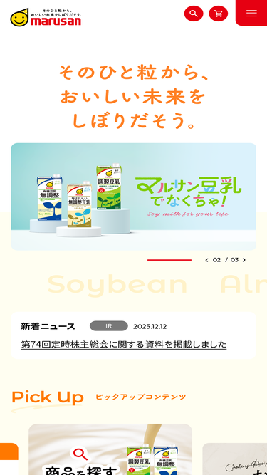 50%医師100名中93%推奨(AskDoctors調べ(※1))の無調整豆乳です。国産大豆100%使用、大豆固形分10%の濃厚(※2)タイプです。しっかりとした大豆の風味をお楽しみいただけます。 ※1 対象商品の資料および商品サンプルを送付した上でのWEB調査、調査時期:2025年3月、調査対象:内科医100名 ※2 当社有機豆乳無調整(大豆固形分9%)と比較