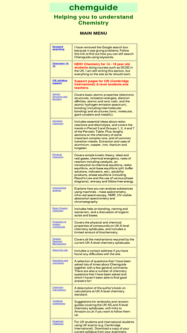 76%main menu of a site aimed to help advanced level chemistry students to understand chemistry