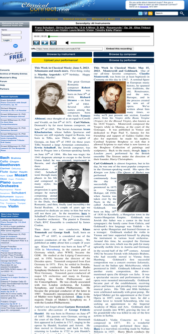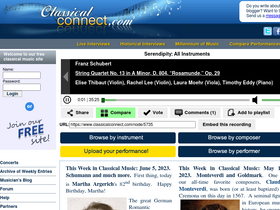 87%free classical music for piano, violin, other instruments, ensembles. virtual concert hall performances by talented classical musicians. streaming mp3 files.