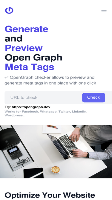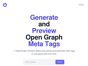 53%OpenGraph.Dev: Generate and preview Open Graph meta tags for images, titles, and more, ensuring optimal display on Facebook, Twitter, LinkedIn, WhatsApp...