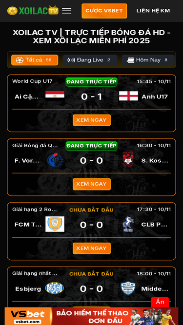 100%Xoilac TV trực tiếp bóng đá HD tốc độ cao, Xôi Lạc TV trực tuyến không quảng cáo ở các giải đấu hàng đầu thế giới cùng đội ngũ BLV dày dặn kinh nghiệm.