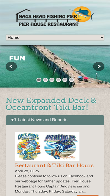 83%Nags Head Fishing Pier, Outer Banks NC fishing and dining for the whole family. Breakfast, lunch, dinner, and drinks in the Tiki Bar, Seasonal Live Music!