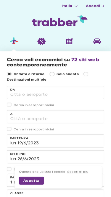 85%trova voli economici su 71 siti web di compagnie aeree e agenzie di viaggi. cerca, confronta e prenota il volo senza commissioni aggiuntive.